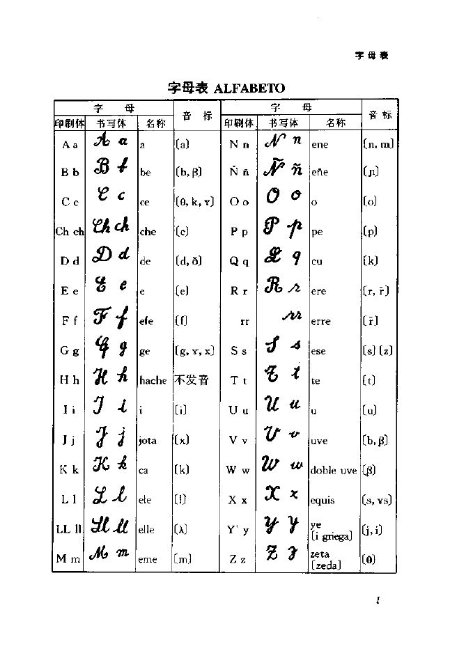 Español Moderno 字母表